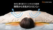 身体の幅に沿った設計のため、襟元やふとん四隅から冷気をシャットアウト。また、寝ている間に掛け布団がずれにくいため暖かい空気を逃さず、保温効果が抜群です。