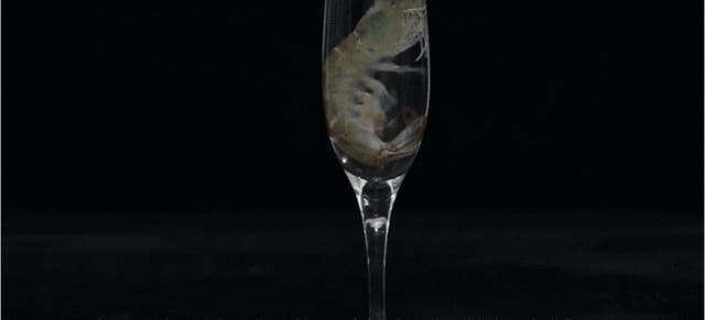 ドライアイスとエビの間に2mmのエアロゲルシートを挟み1分後の経過を観察する実験を行いました。※断熱性実験はSUPIELD・S.KISTLER試験室で行われたものです。