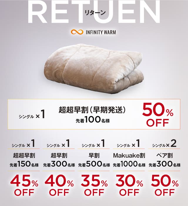 【Makuake割】INFINITY WARM(シングル)/先着1000個