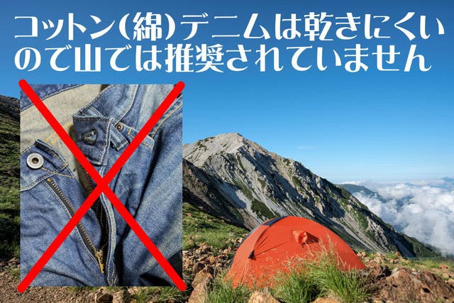頑丈でどこでも使えそうなのですが、実はアウトドア、特に山でデニムは禁忌とされています