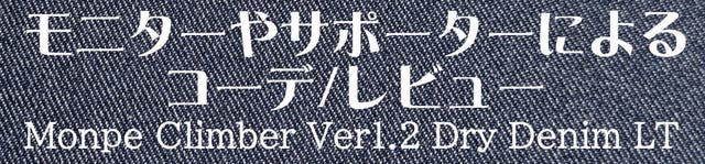 そのデニムを、「どこでも快適でかっこよく使用すること」を目指して作ったものが「Monpe Climber Ver.1.2 Dry Denim LT(ドライ デニム ライト)」です