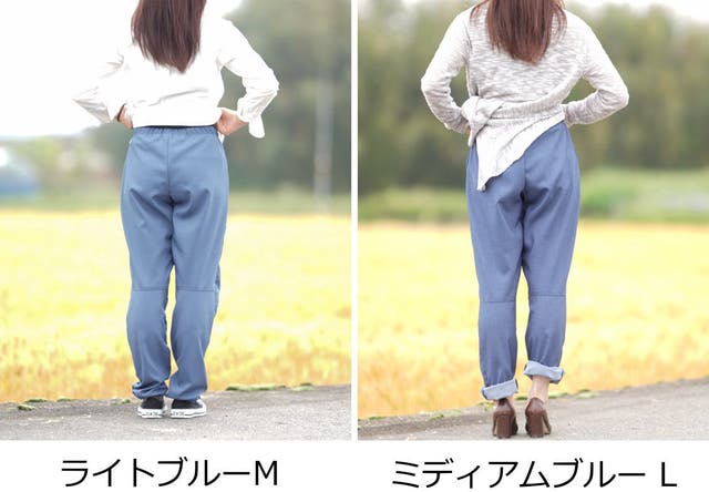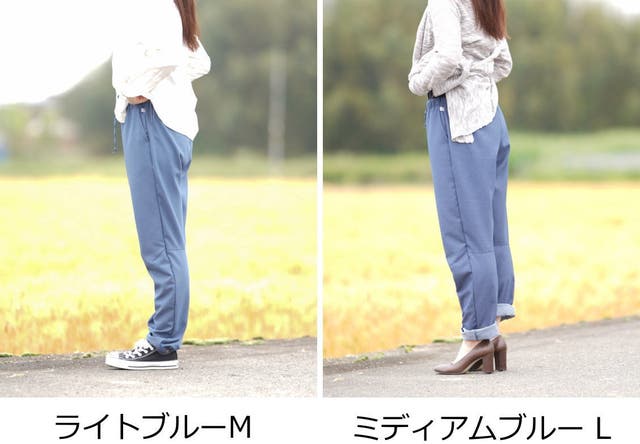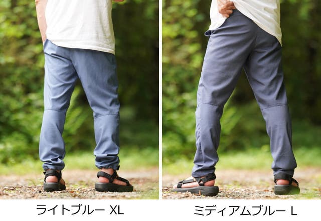 普段Sの女性がオーバーサイズでLをロールアップで履かれたりもしていて、サイズを上げる分には動きやすくなります