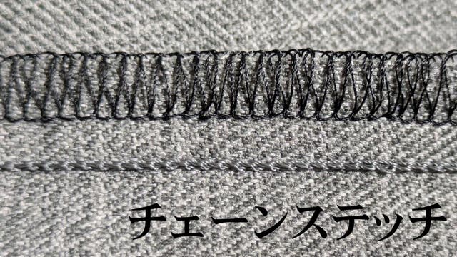 チェーンステッチは負荷がかかった際に縫製自体が伸びるため糸切れを起こしにくくなっています