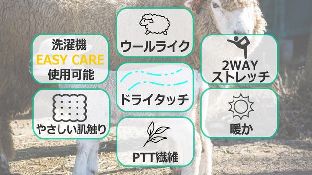 当社ウールライク2はPTT繊維(ポリエステルの一種)という原料の1つに植物由来の原料が使われているポリエステルを使っています