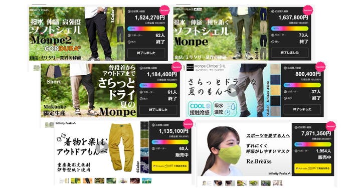 【Makuake割】完成したもんぺクライマー”ゆるめクロップ夏風” 3着