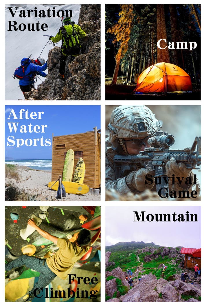 用途は、普段着からアウトドア全般、夏の低山登山、クライミング、キャンプ、アフターマリンスポーツ、サバゲーと何にでも快適に使えます