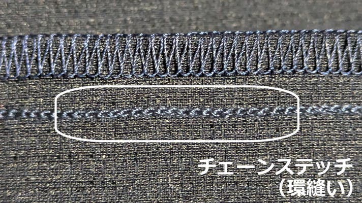 チェーンステッチは負荷がかかった際に縫製自体が伸びるため糸切れを起こしにくい縫製方法です