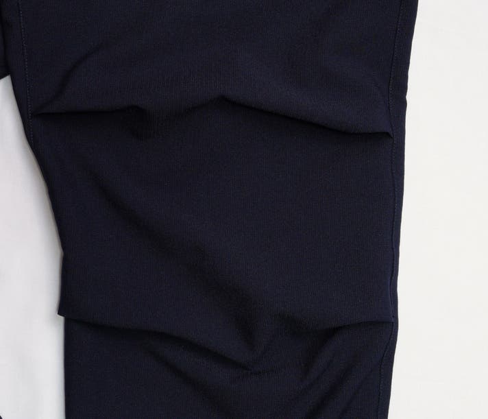 その後、膝に溜まった生地を下におろすと7分丈になります