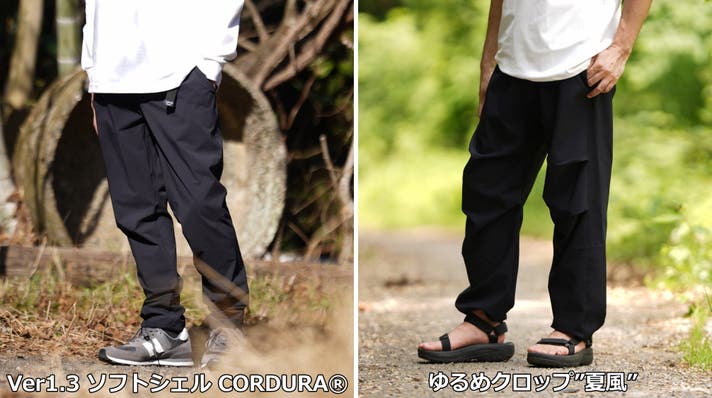 画像左:もんぺクライマーVer1.3 ソフトシェルLT CORDURA®