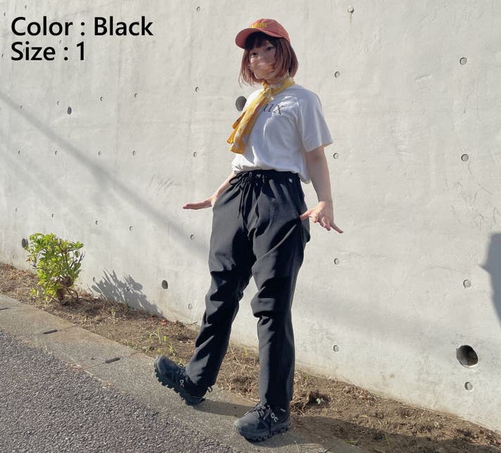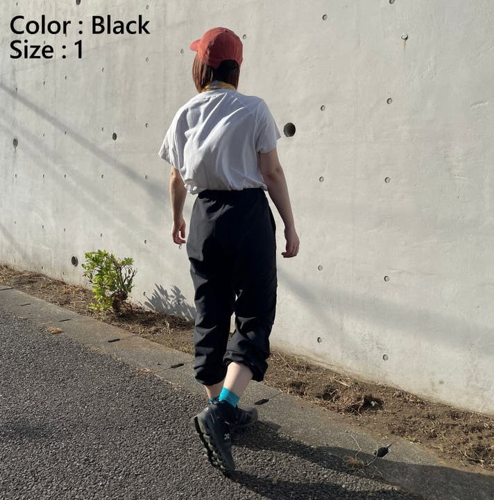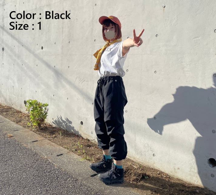 *モデル:きゃりさん サイズ1(推奨サイズ)をウエスト履き/裾絞りで着用