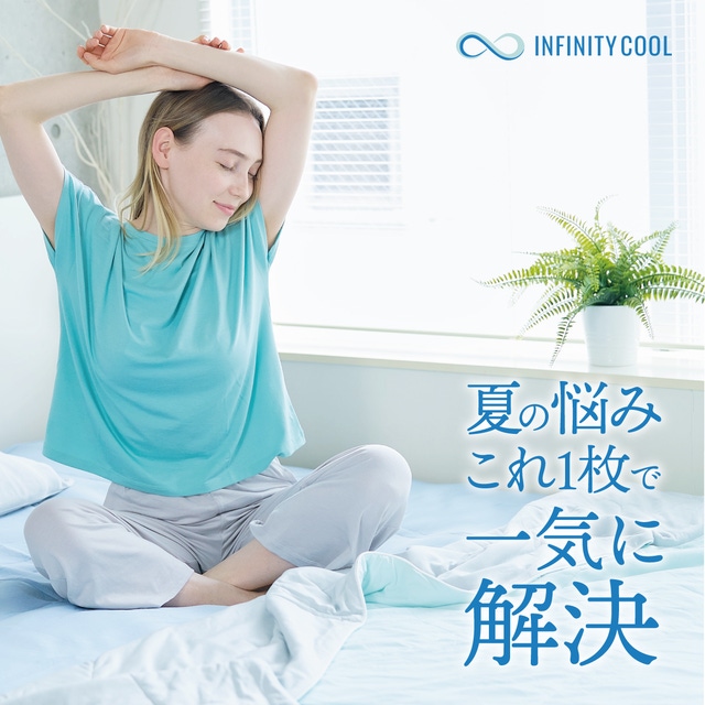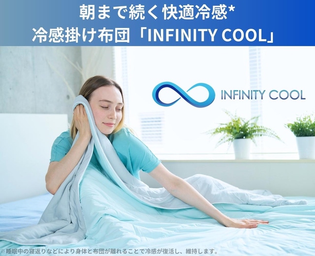 冷感掛け布団「INFINITY COOL」(インフィニティ クール)は最新のテクノロジーを惜しまなく採用し、冷感効果も吸湿・通気性にも優れた究極の1枚で、暑い夏でも朝まで続く冷感*と快適さ!