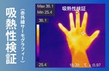 ※表面温度測定: 通常体温(36.4度)の人の手を生地に5秒間当て、手を離した直後の表面温度をサーモグラフィーカメラで測定した。(環境:室温27°度、湿度50%)