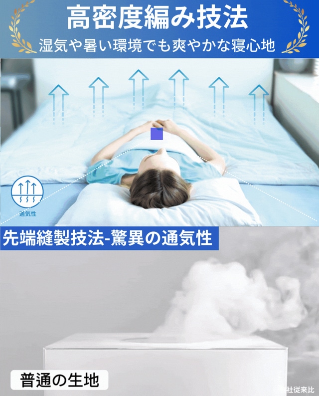 そこで必要となるのが、吸収した熱を発散し、睡眠中の発汗などで上がる湿度を調節する「吸湿・通気性」です。