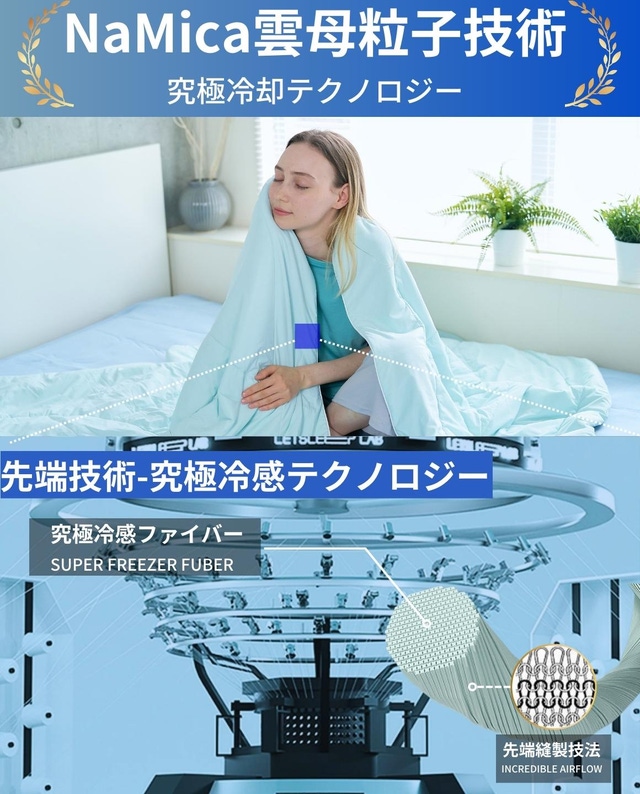 - 【先端技術】NaMica雲母粒子技術と高密度編み技法を採用し、抜群の冷感と快適さを実現!
