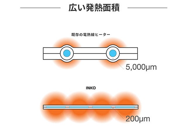 - 【世界初】インクで温める特許技術で実現した超スリムヒーター!薄さ1.5mm、超軽量