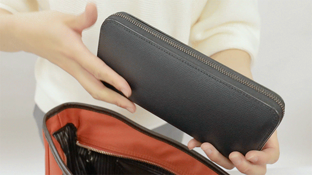 口元にはファスナーが付いているので、街中や電車の中でも安心して鞄を持ち歩けます。