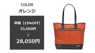 先着30名様【早割15%OFF】トートバッグ1本・オレンジ
