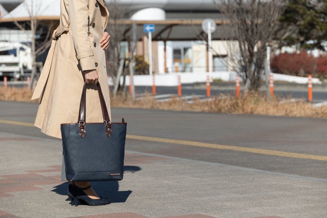 このトートバッグであれば地面に置くことも無くスマートに乗車が可能です。