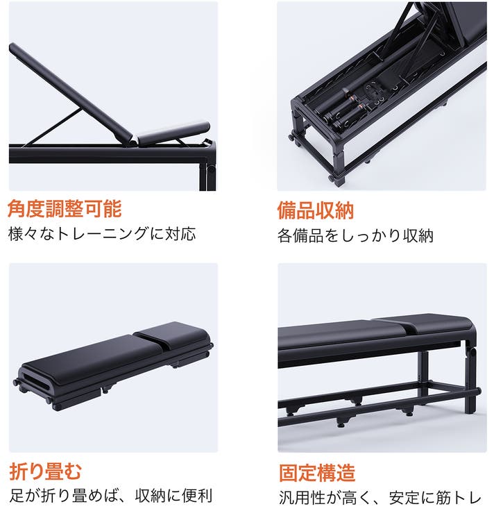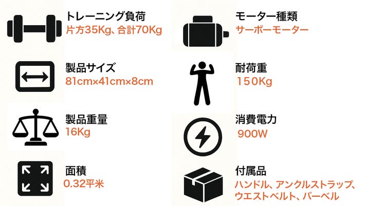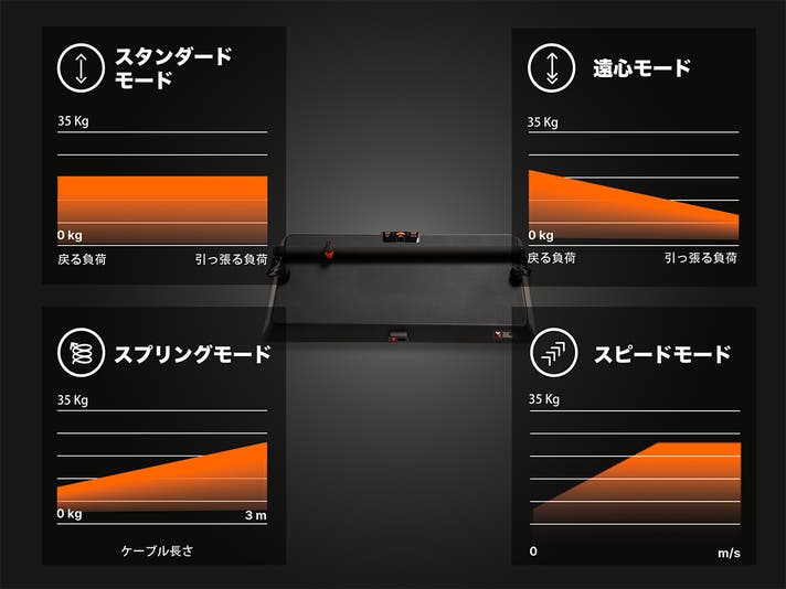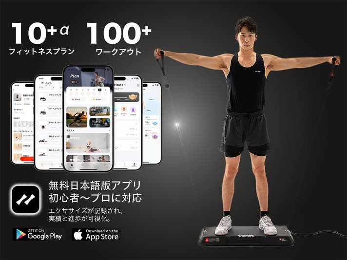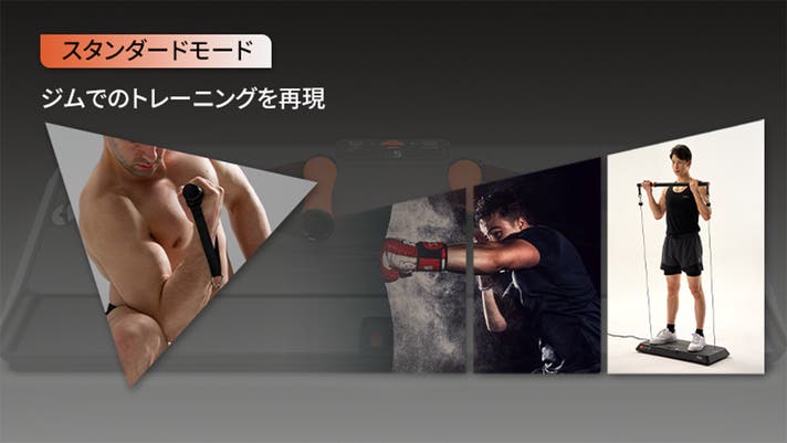 - 複数のマシン機能、4つのトレーニンモードを1台に集約。ジムを丸ごと自宅に持ち込む。