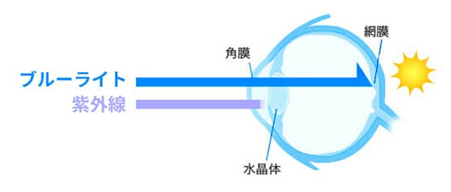 紫外線は角膜を透過できませんが、ブルーライトは角膜を透過し網膜まで達してしまいます。