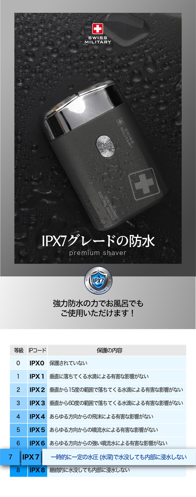 - IPX7レベル防水力!ヘッド取り替え式で簡単衛生的に!