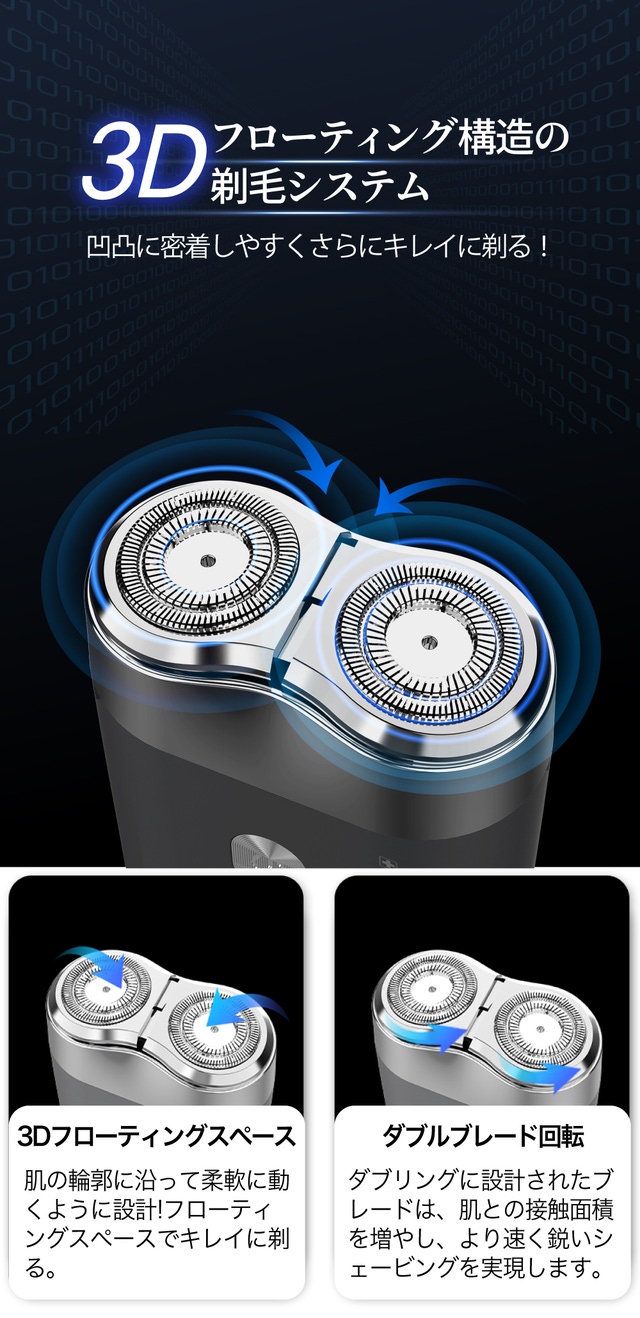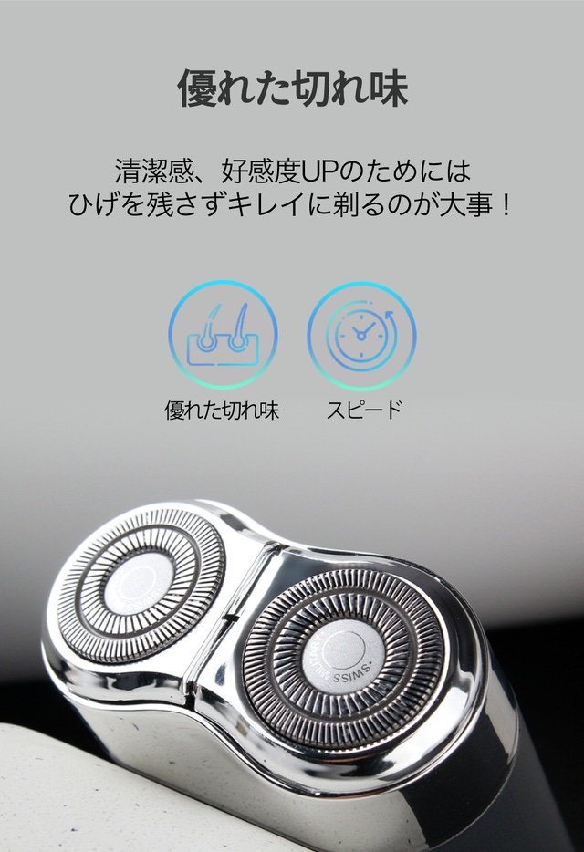 - ダブルブレード回転で素早く鋭いシェービングを実現!