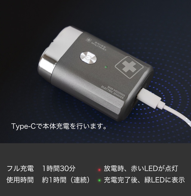 ・シェーバーのバッテリー放電時は赤色LEDが点滅し、充電を開始すると赤色LEDが徐々に点滅します。