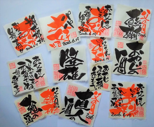 白紙の杉原紙に皆様のお言葉を書き入れたラベルを瓶に貼って字酒は出来上がります!!