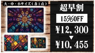 【15%OFF】超早割:セット販売(大サイズ1点、中サイズ1点、小サイズ1点)。