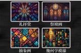 ステンドグラスらしさを強調した宗教的なモチーフや芸術的模様・・・。