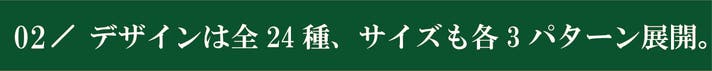 - 全24種、それぞれ大・中・小の3つのサイズパターンからお選びいただけます。