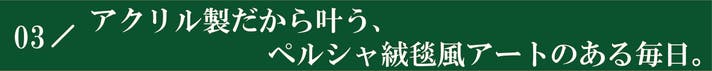 - 高級感・重厚感のあるアクリル製、壁に貼り付ける仕様で簡易的にペルシャ絨毯の趣を楽しめます。