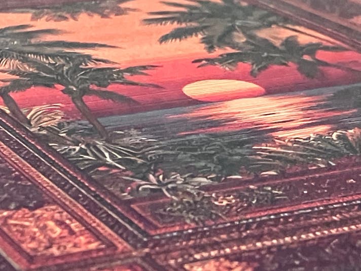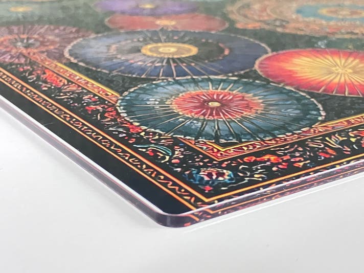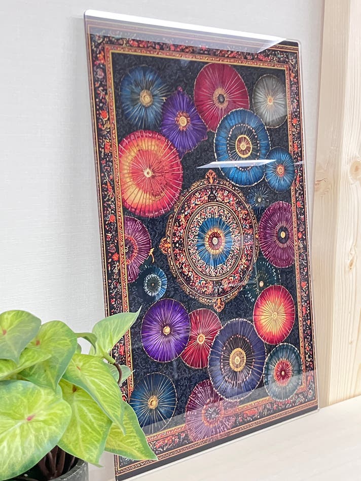 また額縁に埃がたまったり湿気で劣化したりという懸念は少なく、手入れのしやすさもアクリル製の利点でして「洗わないペルシャ絨毯のようなアート」というイメージでご使用いただけるかと思います。