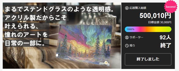 このプロジェクトはAll in型です。目標金額の達成に関わらず、プロジェクト終了日の2026年03月30日までに支払いを完了した時点で購入が成立します。