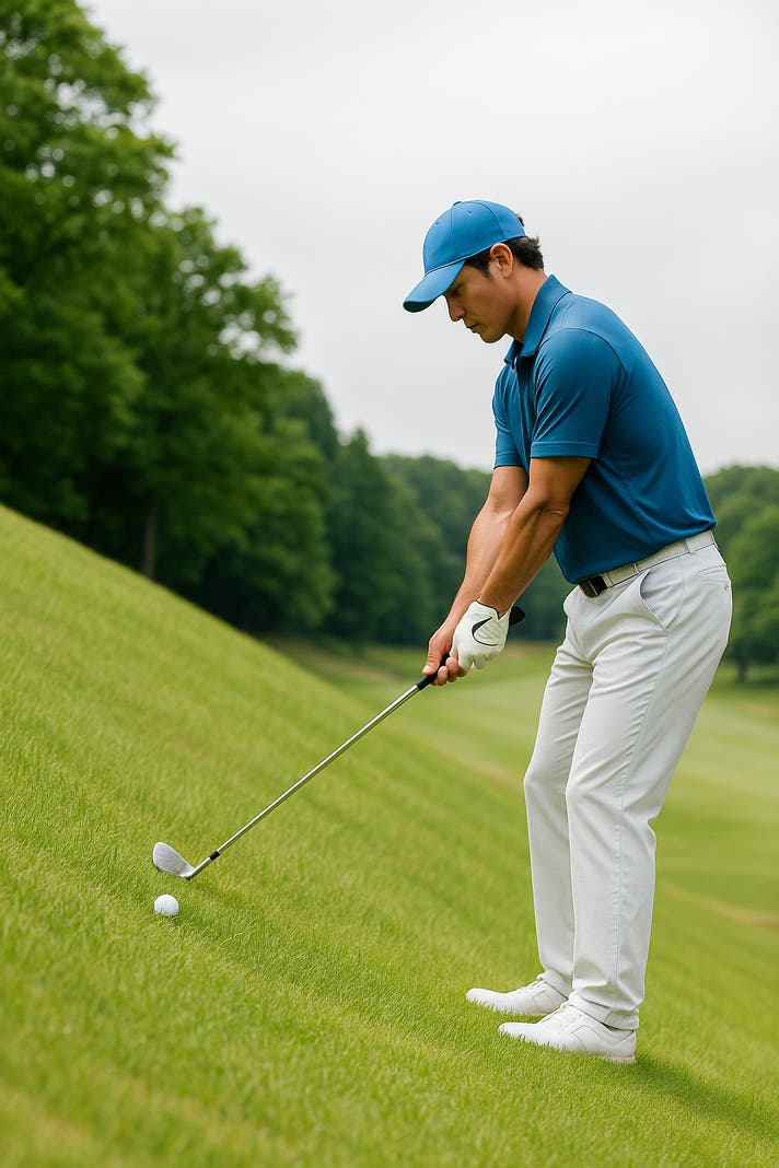 靴の中で足がズレやすい傾斜地からのスイングも安定感を保ちます。