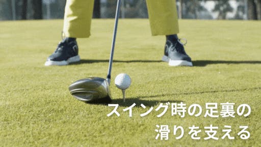 足裏の最も体重がかかる4点に、スイング時の踏ん張りを生むシリコングリップを施しました。スイングパワーのロスを防ぎます。