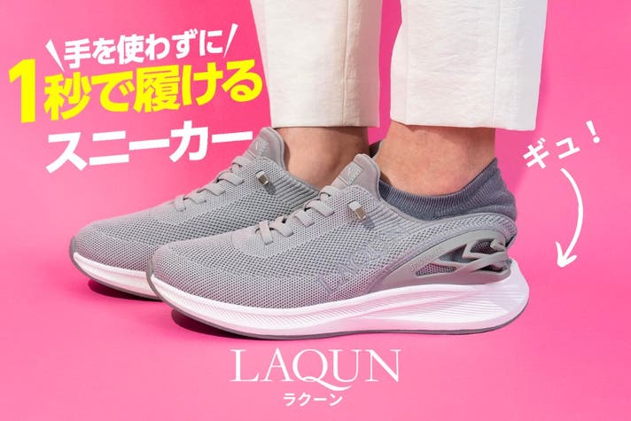 2023年Makuake初登場した「LAQUN(ラクーン)」は靴の脱ぎ履きを変える革新的シューズです。あなたの毎日を劇的にラクにします! 手を使わずに履ける、感動体験をお届けします。2024年8月11日デイリー総合ランキング1位を獲得!(応援購入額を集計して購入金額の多いランキング)