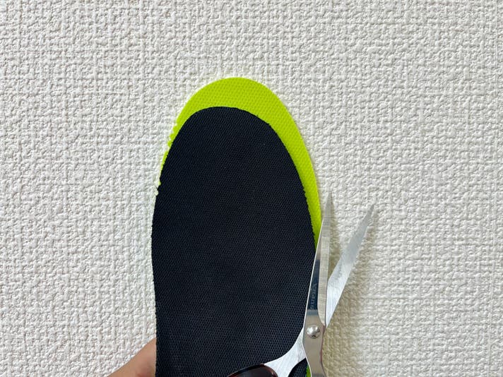 A : 爪先部分をハサミでカットするする事でお持ちの靴にあったサイズに調整できます。元のインソールを取り外して重ね、同じ大きさにカットする方法がおすすめです。