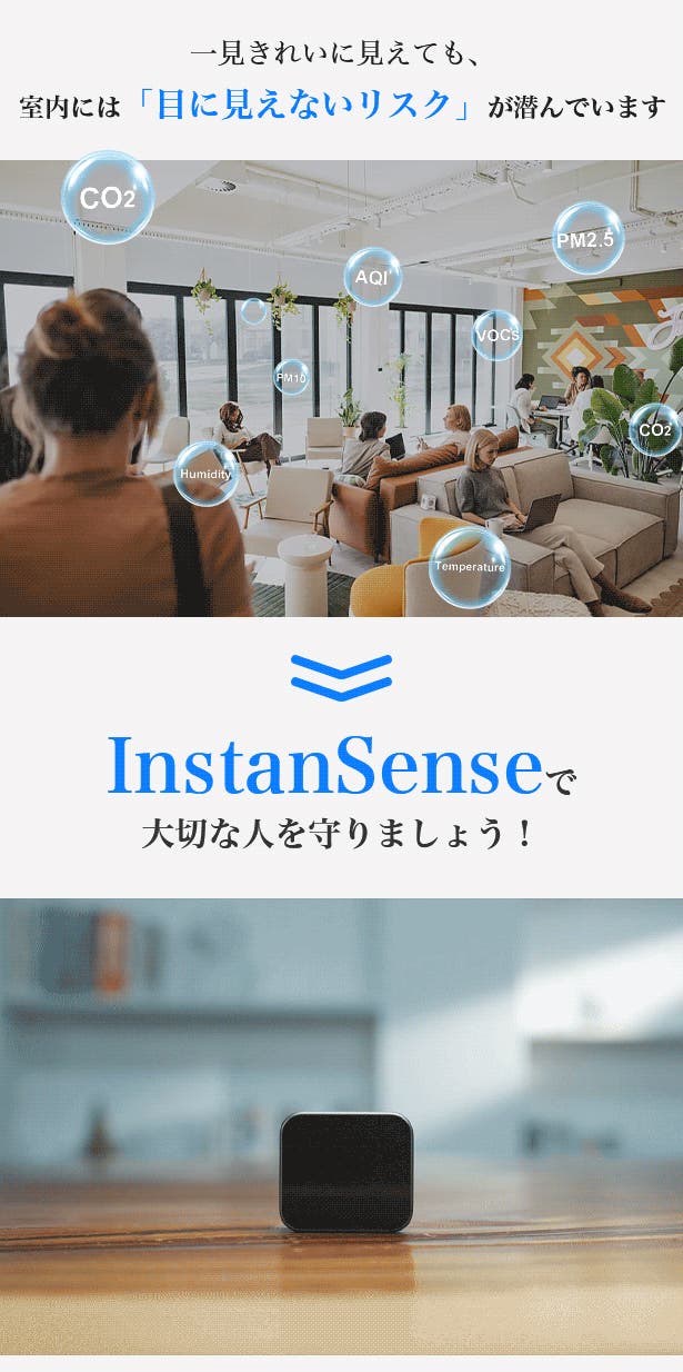 InstanSenseは複数のセンサーを搭載し、光学・音響・熱感知・半導体などの先端技術を融合。空気中の微粒子、ガス濃度、温度・湿度などのデータを、高精度で検知します。