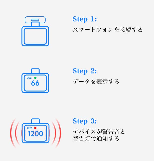 Step 3: 空気の状態が悪化した場合、警告音とランプでお知らせします。