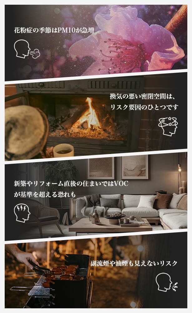 空気中に潜むリスクを見える化し、あなたと家族の呼吸をしっかり守ります。