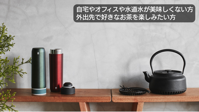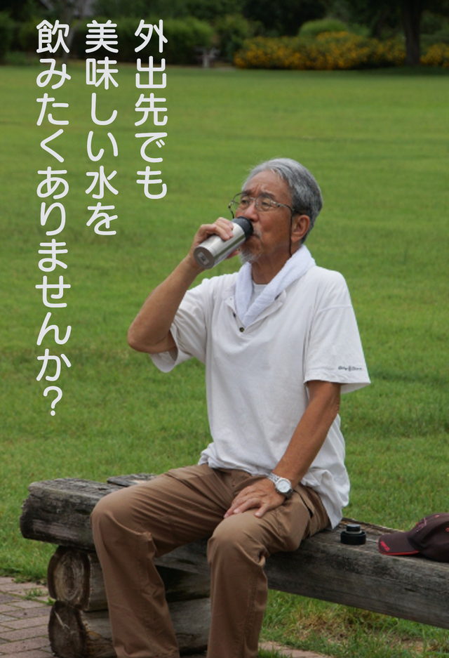 水道水の臭い物質や雑味成分を取り除き、外出先でも美味しい水が楽しめます。