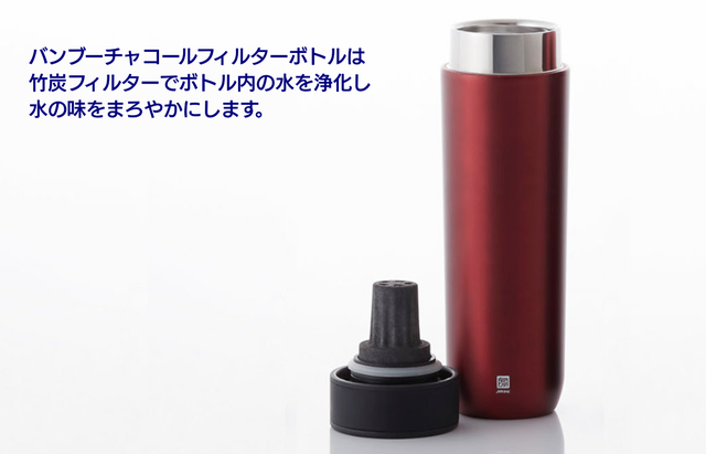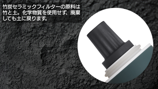 JIA竹炭セラミックフィルターボトルは蓋の部分に竹炭を練り込んだセラミックフィルターを搭載しています。