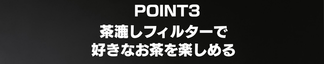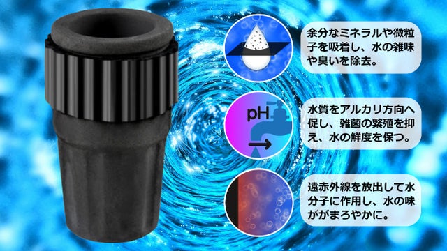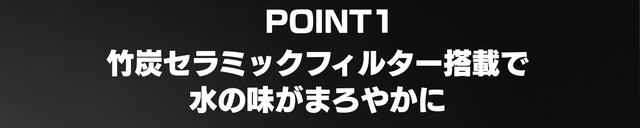 - .竹炭を配合したセラミックフィルターを搭載。水の不純物を吸着し、美味しい水が味わえる。