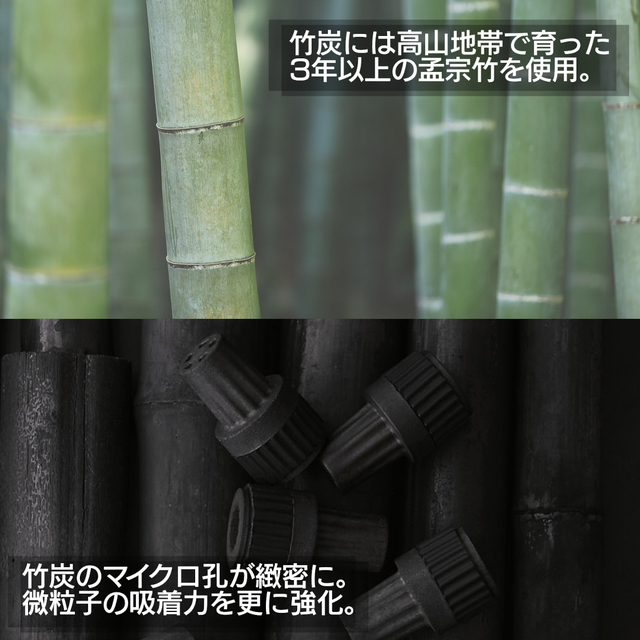 JIA竹炭セラミックフィルターボトルの竹炭セラミックフィルターが小さくてもマグの水を美味しくする秘訣が、高山地帯で育成した孟宗竹の竹炭を使っているから。