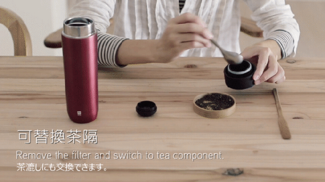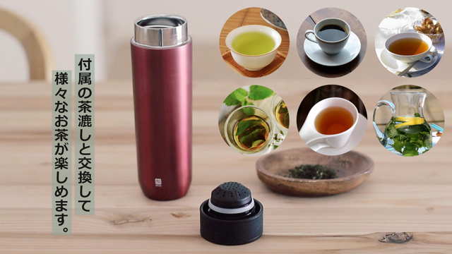- ステンレス真空断熱二層構造で保温性抜群。茶漉しフィルター付きで淹れたてのお茶も楽しめる。