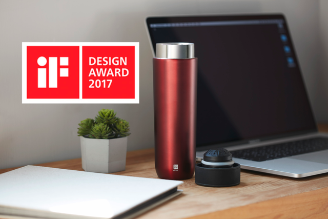 世界三大プロダクトデザイン賞の一つ、ドイツのIFデザイン賞も受賞した、機能性とおしゃれを兼ね備えた携帯マグボトルです。