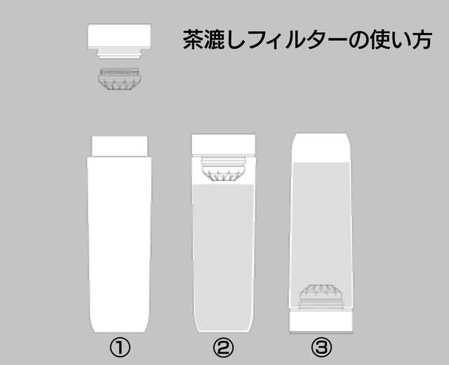 ①茶漉しフィルターの容量の1/3程度のまで茶葉を入れ、蓋に取り付けます。