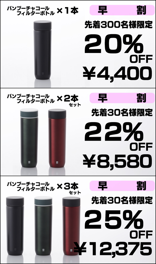 【早割】先着300名限定 竹炭セラミックフィルターボトル x1 本