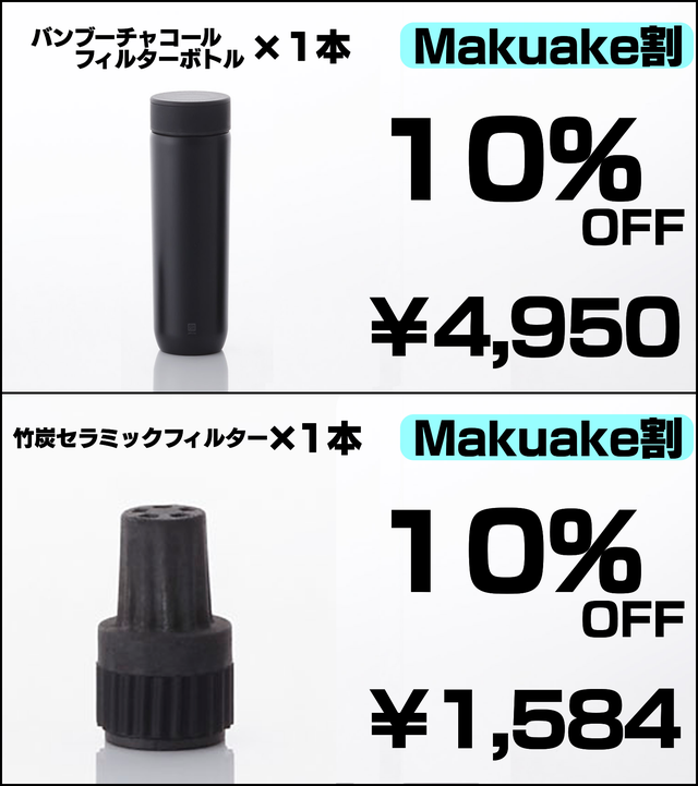 【Makuake割】竹炭セラミックフィルターボトル x1 本